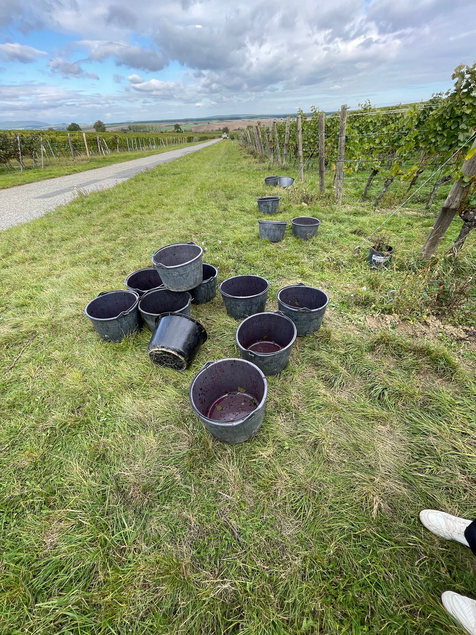 Einen Tag früher als 2021 beginnen wir mit der heurigen Ernte. Das Wetter ist etwas verhalten, statt strahlendem Sonnenschein begleiten uns Regenwolken, die sich aber im Lauf der Woche mehr und mehr zurückziehen. Das Wetter ist für uns ganz wichtig, da wir unsere Trauben mit der Hand lesen. Das ist für uns ein wichtiges Qualiätskriterium. Aber diese Arbeit braucht Zeit und Geduld… 🍇✂️🍷